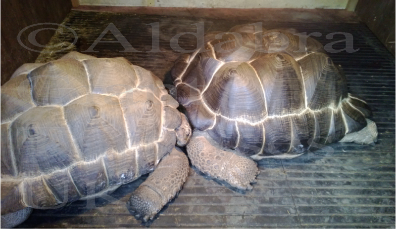 Wild Aldabra tortoise size varies across the atoll, depending on how much food they have had access to in their lifetime and the type of food can also affect the smoothness of their shell. Too much fruit in their diet can cause pyramiding of the shell.